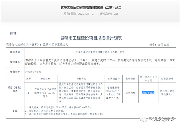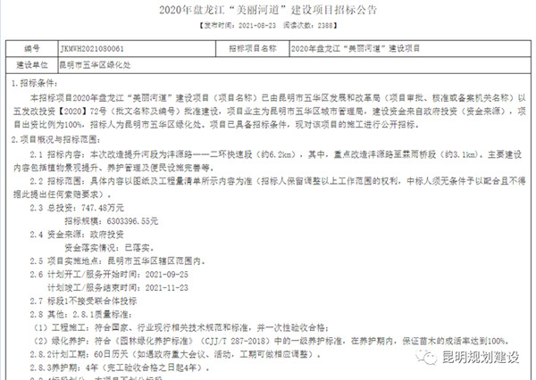 去年8月,五華區(qū)綠化處曾發(fā)布《2020年盤龍江“美麗河道”建設(shè)項(xiàng)目招標(biāo)公告》,計(jì)劃投資747.48萬元,對(duì)轄區(qū)范圍內(nèi)的盤龍區(qū)段進(jìn)行改造。改造提升河段為灃源路至二環(huán)快速段(約6.2千米),其中,重點(diǎn)改造灃源路至霖雨橋段(約3.1千米)。