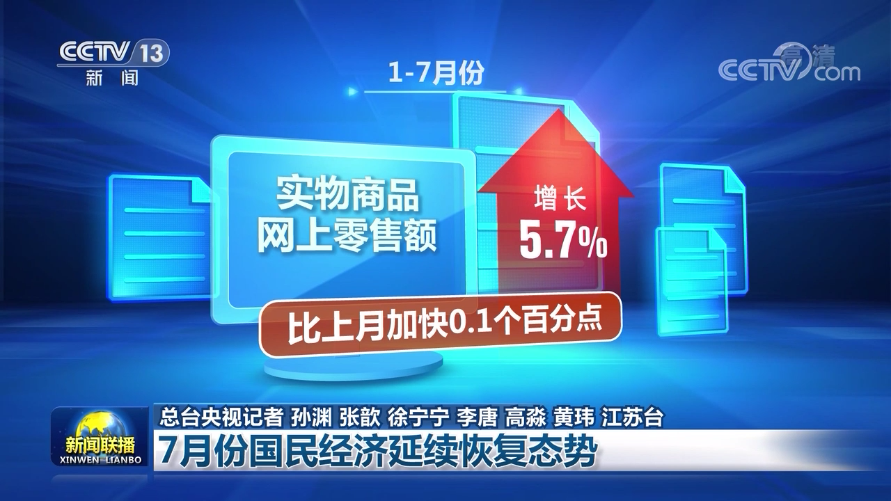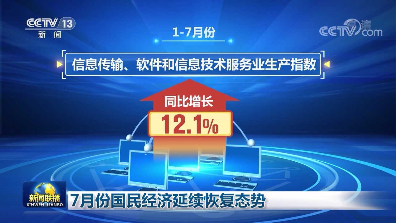高技術產業(yè)發(fā)展較快,數字經濟增勢較好。1—7月份,信息傳輸、軟件和信息技術服務業(yè)生產指數同比增長12.1%,實物商品網上零售額增長5.7%,比上月加快了0.1個百分點。