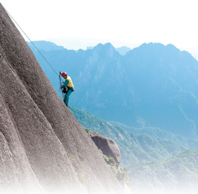 經(jīng)過刻苦專業(yè)訓練和長期實地操作,如今的李培生對這個工作已是駕輕就熟。憑借一根繩索,他在懸崖峭壁間行走自如。