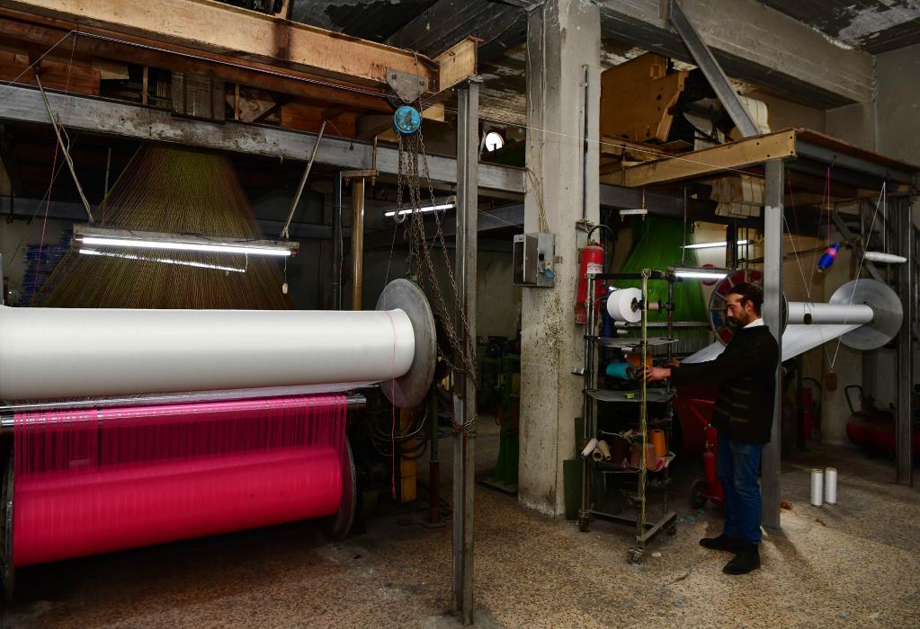 3月7日,一名敘利亞紡織工作者在阿勒頗卡塔爾基工業(yè)區(qū)的一間廠房內(nèi)工作。(新華社發(fā),阿馬爾·薩法爾賈拉尼 攝)