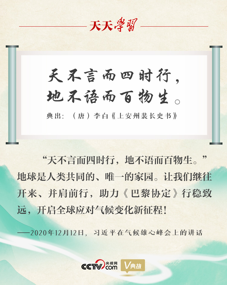 習(xí)近平總書記多次在講話中引經(jīng)據(jù)典,謳歌天藍(lán)地綠水凈的美麗中國,“典”贊生態(tài)文明新時代。央視網(wǎng)《天天學(xué)習(xí)》欄目特選取部分用典,與您一起學(xué)習(xí)領(lǐng)會。