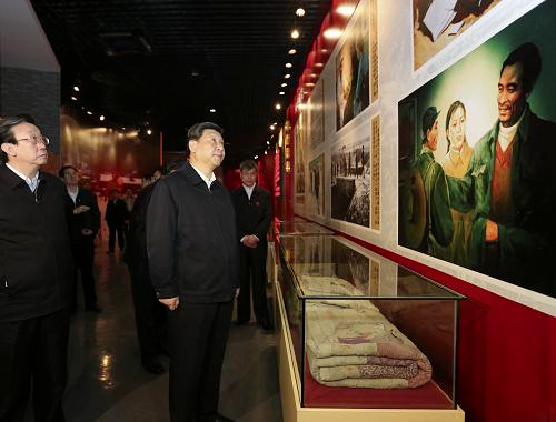 2014年3月17日至18日,習(xí)近平在河南省蘭考縣調(diào)研指導(dǎo)黨的群眾路線教育實(shí)踐活動(dòng)。這是3月17日,習(xí)近平參觀焦裕祿同志紀(jì)念館。新華社記者 丁林/攝