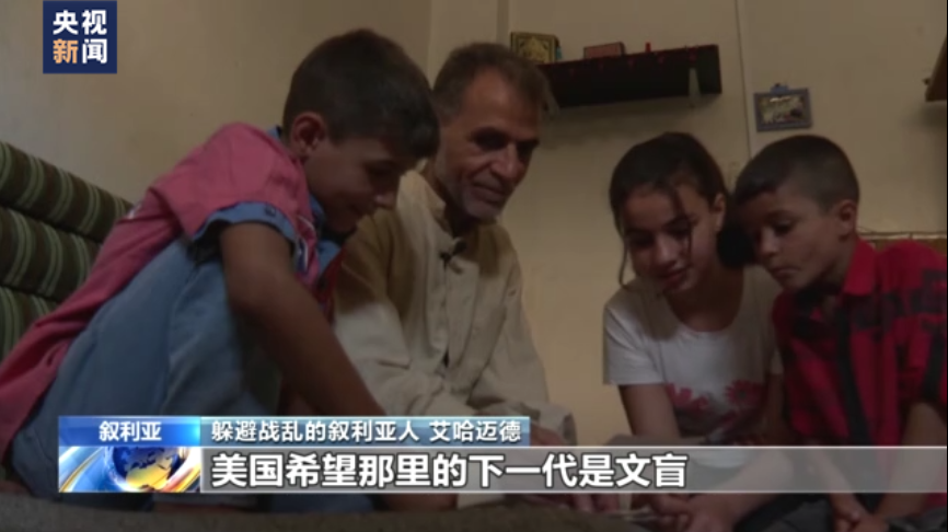 躲避戰(zhàn)亂的敘利亞人 艾哈邁德:拉卡的62所學(xué)校只有2所沒(méi)被破壞,美國(guó)希望那里的下一代是文盲,不論是在哈塞克、拉卡,還是代爾祖爾的一些地方,他們(美國(guó))不愿意開(kāi)放教育機(jī)構(gòu),他們的最終目標(biāo)是停止教育。