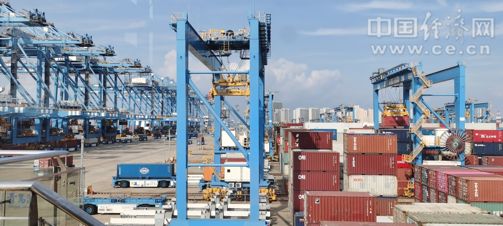 山東港口青島港繁忙作業(yè)中。中國(guó)經(jīng)濟(jì)網(wǎng)記者 宋雅靜/攝