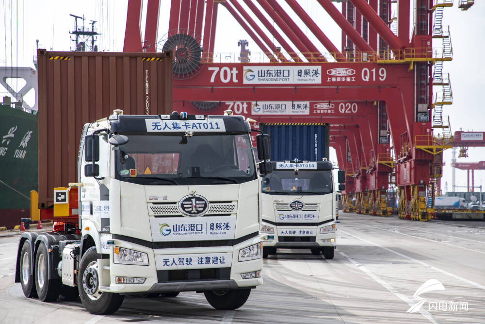 齊魯網(wǎng)·閃電新聞8月17日訊 山東港口日照港全自動化集裝箱碼頭,遠控岸橋精準抓放、收放自如,30臺軌道吊有條不紊、井然有序,一輛輛無人集卡往來穿梭,忙而不亂。跟大多數(shù)港口的自動化碼頭不一樣的是,它是全球首個順岸開放式全自動化集裝箱碼頭,應用“北斗+5G”技術,推出了自主研發(fā)和集成創(chuàng)新的無人集卡調(diào)度系統(tǒng)等6項國產(chǎn)化、業(yè)界首創(chuàng)的科技成果,向全球港航業(yè)奉獻了傳統(tǒng)集裝箱碼頭智能化改造的“山東港口日照港”方案,引領全自動碼頭建設進入了“低成本、見效快、可復制、易推廣”的新時代。