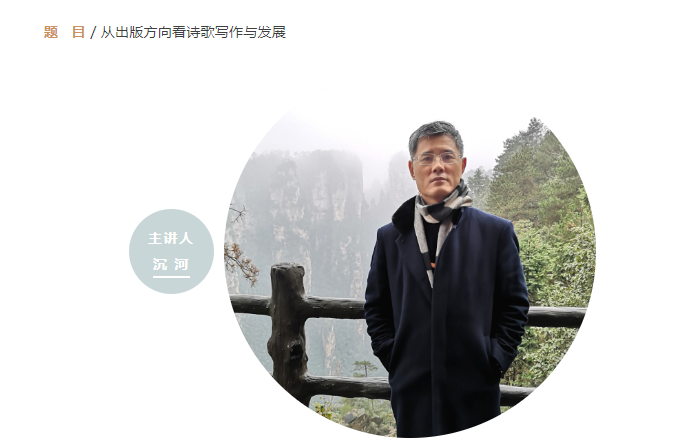 8月21日14:30至17:30,邀請到了主講嘉賓沉河作題為《從出版方向看詩歌寫作與發(fā)展》的講授。沉河,本名何性松,1967年12月出生于湖北潛江。主要寫作詩歌、散文等。曾出版詩集《碧玉》、散文集《在細草間》等。2012年創(chuàng)辦長江詩歌出版中心,統(tǒng)籌出版《中國新詩百年大典》,策劃出版“中國二十一世紀詩叢”、中國新詩季度選本《詩收獲》等。