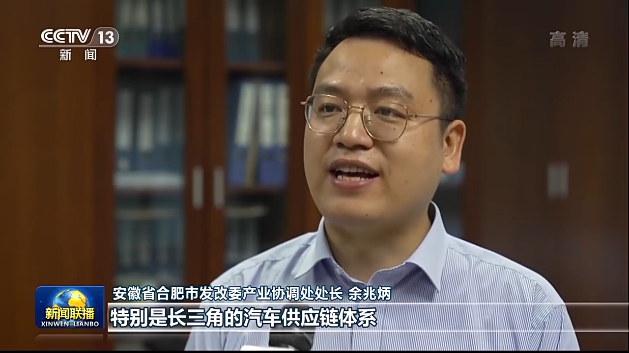 安徽省合肥市發(fā)改委產(chǎn)業(yè)協(xié)調(diào)處處長 余兆炳:特別是長三角的汽車供應鏈體系,比如汽車內(nèi)外飾很多來自上海、浙江,汽車電子器件很多來自江蘇,正是因為產(chǎn)業(yè)一體化合作成效顯著,大大降低了我們的生產(chǎn)成本,也吸引了一批汽車行業(yè)龍頭落戶合肥。