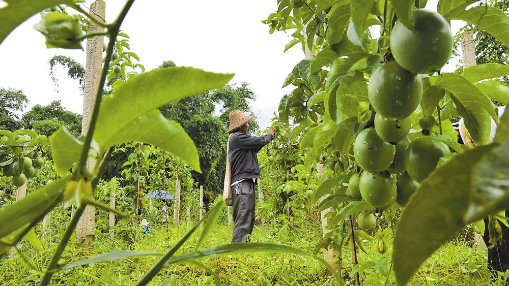 走進(jìn)綠春縣大水溝鄉(xiāng)團(tuán)山村百香果種植基地,一眼望去,連片的百香果長(zhǎng)勢(shì)喜人,村民們穿梭于藤蔓間,采摘著成熟的果子。
