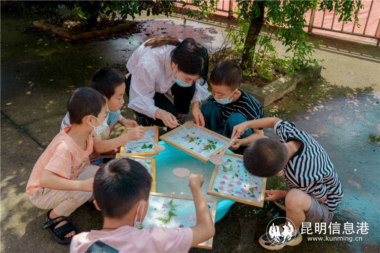 撕碎紙漿泥,加入到水中,攪拌均勻,等紙漿靜止后慢慢起紙……根據(jù)老師的現(xiàn)場演示,孩子們拿起自己采摘的樹葉、花瓣等原材料細(xì)心裝飾,輕輕按壓,拼組成自己喜歡的花樣,再小心翼翼澆上稀釋好的紙漿。