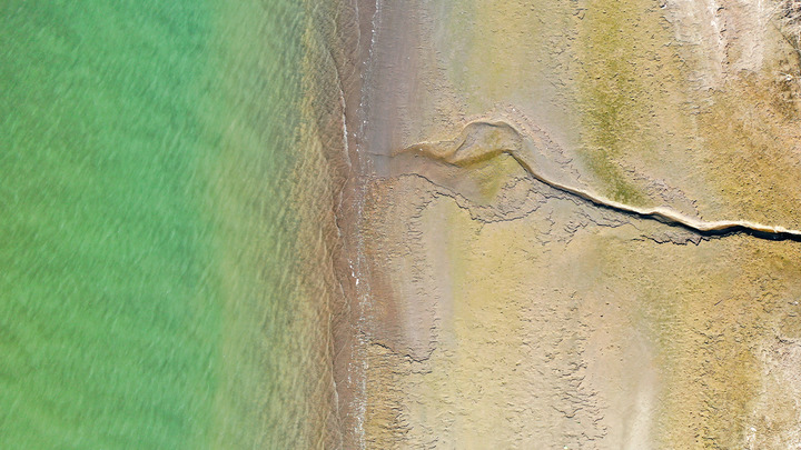 長江揚(yáng)州段裸露的灘涂(8月22日攝,無人機(jī)照片)。新華社發(fā)(齊立廣 攝)