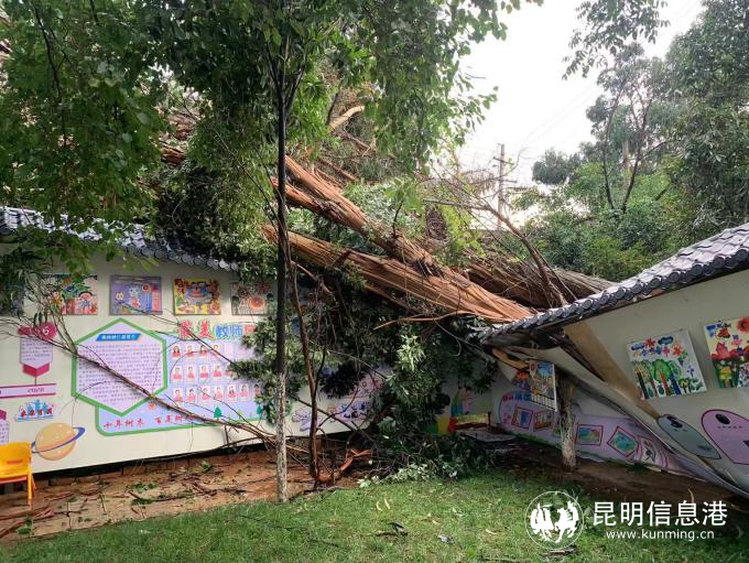 群眾的呼聲就是哨聲源、指揮棒。接到案件后,六甲街道黨工委、辦事處高度重視,及時(shí)安排街道城市管理綜合服務(wù)中心協(xié)調(diào)專業(yè)施工隊(duì)伍及時(shí)清除倒塌桉樹,同時(shí)要求街道城市管理綜合服務(wù)中心、應(yīng)急管理中心、網(wǎng)格綜合服務(wù)中心等多部門快速聯(lián)動(dòng)就南壩幼兒園、新二中心學(xué)校院墻內(nèi)外的樹木安全隱患進(jìn)行了全面排查。工作人員趕到現(xiàn)場(chǎng)了解情況,發(fā)現(xiàn)一棵高近20米、樹冠近13米的桉樹倒塌,砸壞了幼兒園內(nèi)宣傳墻和1株香樟樹,懸空栽倒在學(xué)校院子內(nèi)。