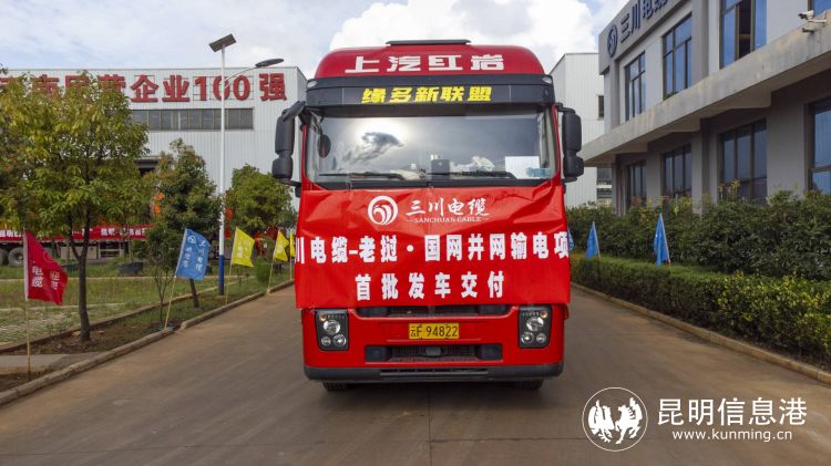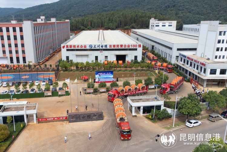 昆明信息港訊 記者栗飛 8月25日,陽宗海“昆明制造”助力“一帶一路”昆明—磨憨首批出口電纜發(fā)車儀式舉行。十輛滿載電纜的貨車緩緩從昆明三川電線電纜有限公司(下稱:昆明三川公司)駛出,首批500余噸電纜將通過磨憨口岸發(fā)往老撾。