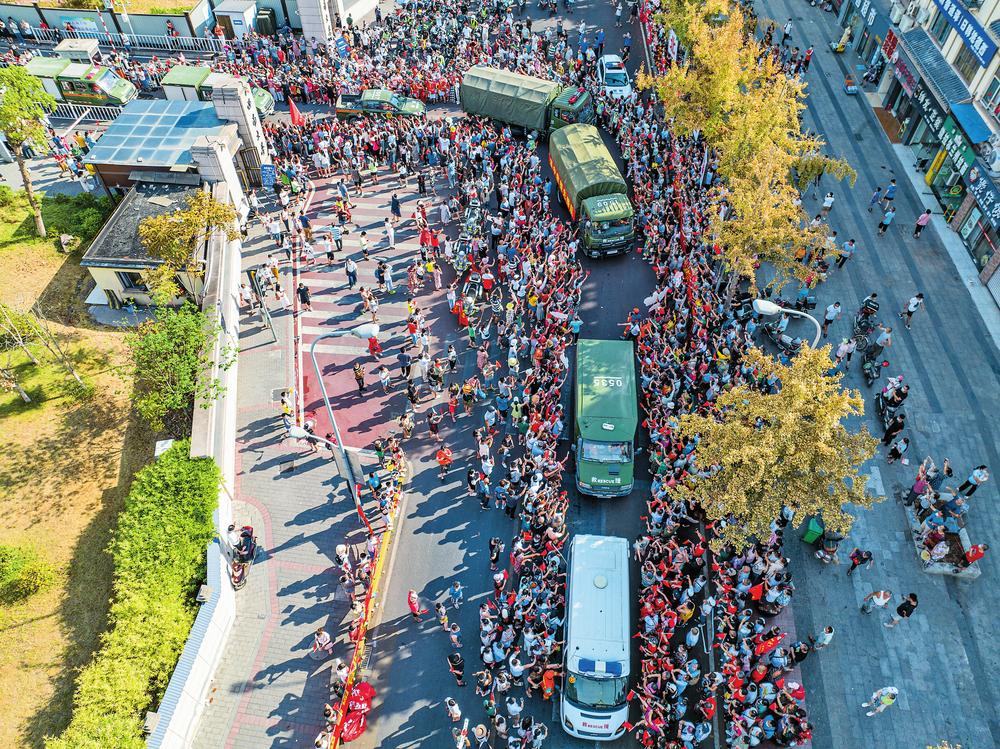 重慶市民自發(fā)夾道歡送。新華社記者 朱高祥 攝