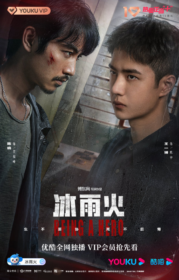 《冰雨火》這部電視劇的英文名字是“Being A Hero”,直譯過來即“做一個英雄”。