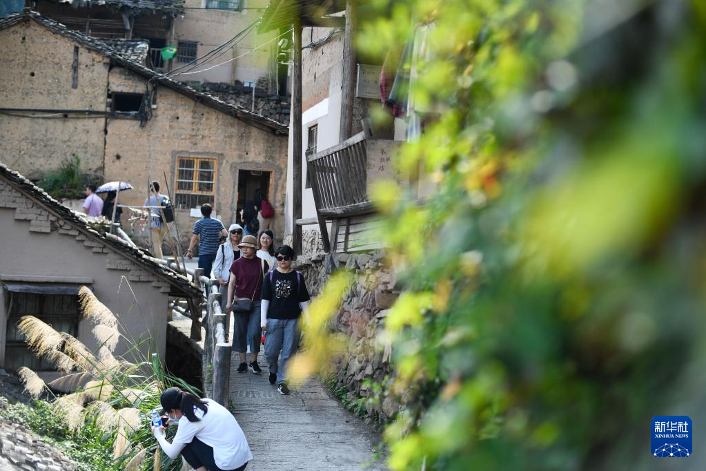 游客在浙江省松陽縣四都鄉(xiāng)陳家鋪村游覽(2020年7月17日攝)。新華社記者 黃宗治 攝