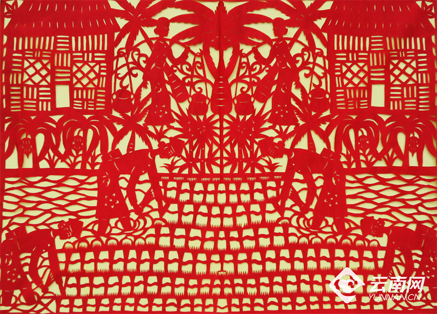 傣族人民的生活亦如剪紙,平凡而不缺細(xì)節(jié)里的生機(jī),簡(jiǎn)單而不失精神上的繁榮。傣族剪紙?jiān)煨退囆g(shù)是傣族先民在漫長(zhǎng)的文明進(jìn)程中樸素的原始印象和審美思維的映射,最大的特征就是簡(jiǎn)練概括、夸張傳神、構(gòu)思大膽,作品風(fēng)格古樸、粗獷、自然,地域感強(qiáng),保留著較多的傣族古老文化傳統(tǒng)痕跡和民族風(fēng)俗,體現(xiàn)了民間藝術(shù)最基本的審美觀念和精神品質(zhì)。