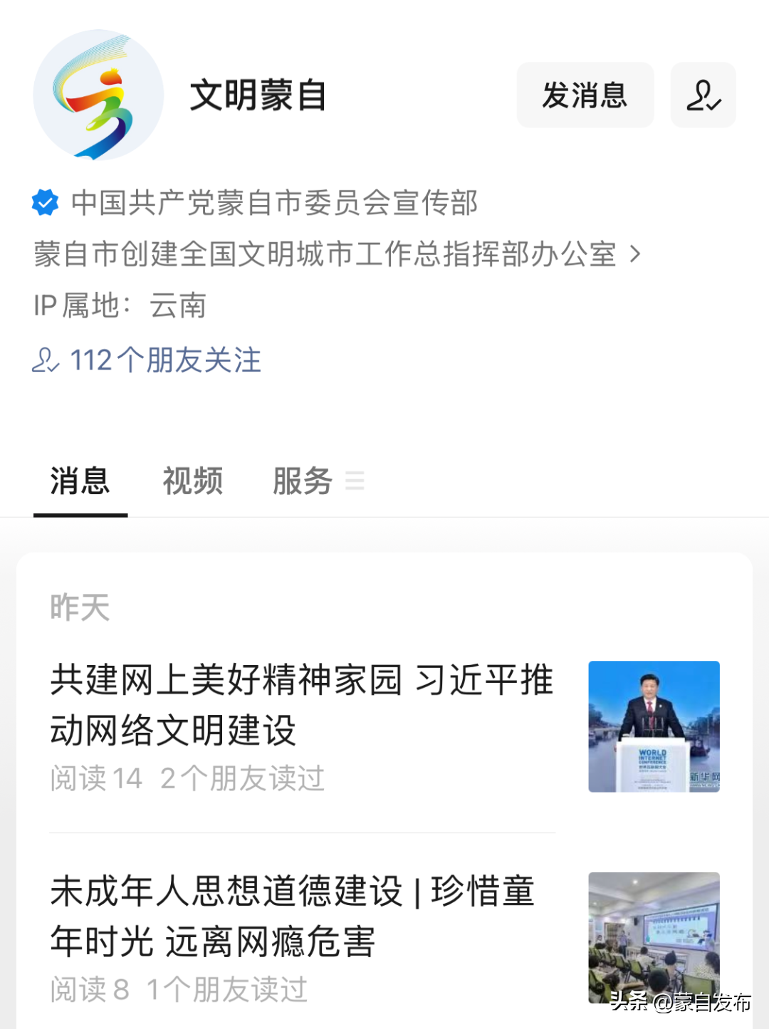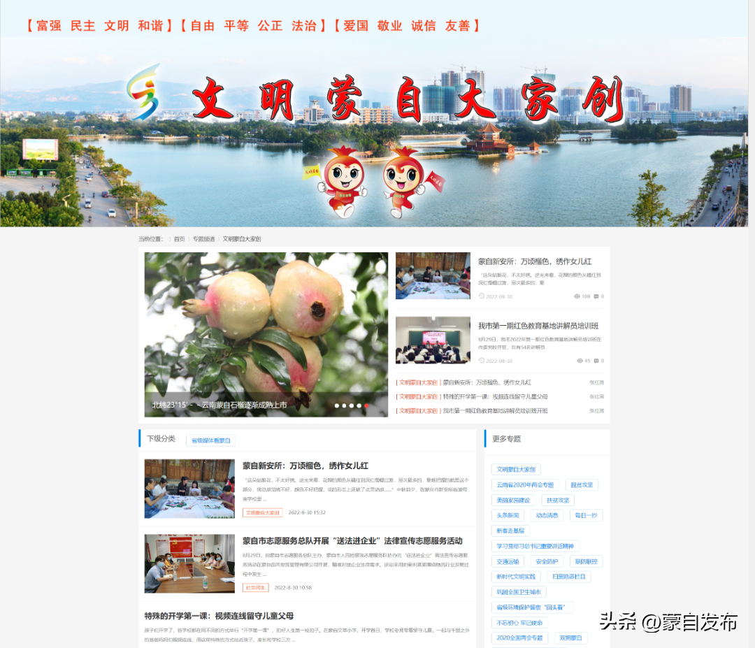 除了媒體矩陣宣傳,蒙自市還創(chuàng)建“文明蒙自”微信公眾號(hào),專門(mén)發(fā)布群眾身邊的文明人、文明事相關(guān)文章、視頻1300余條;100余期“文明講堂”和全市150余個(gè)場(chǎng)館、10000余塊展板和2座“榮譽(yù)橋”,全方位宣傳、展示著蒙自道德模范和品牌志愿服務(wù)活動(dòng);設(shè)置在市區(qū)主次干道、公園廣場(chǎng)的100余個(gè)公益廣告景觀小品,樣式美觀、內(nèi)容富含哲理,精神文明創(chuàng)建走新更走心。