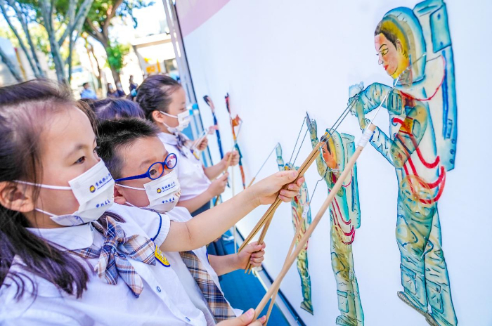 學(xué)生們表演皮影戲 供圖