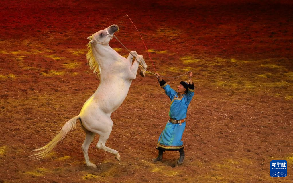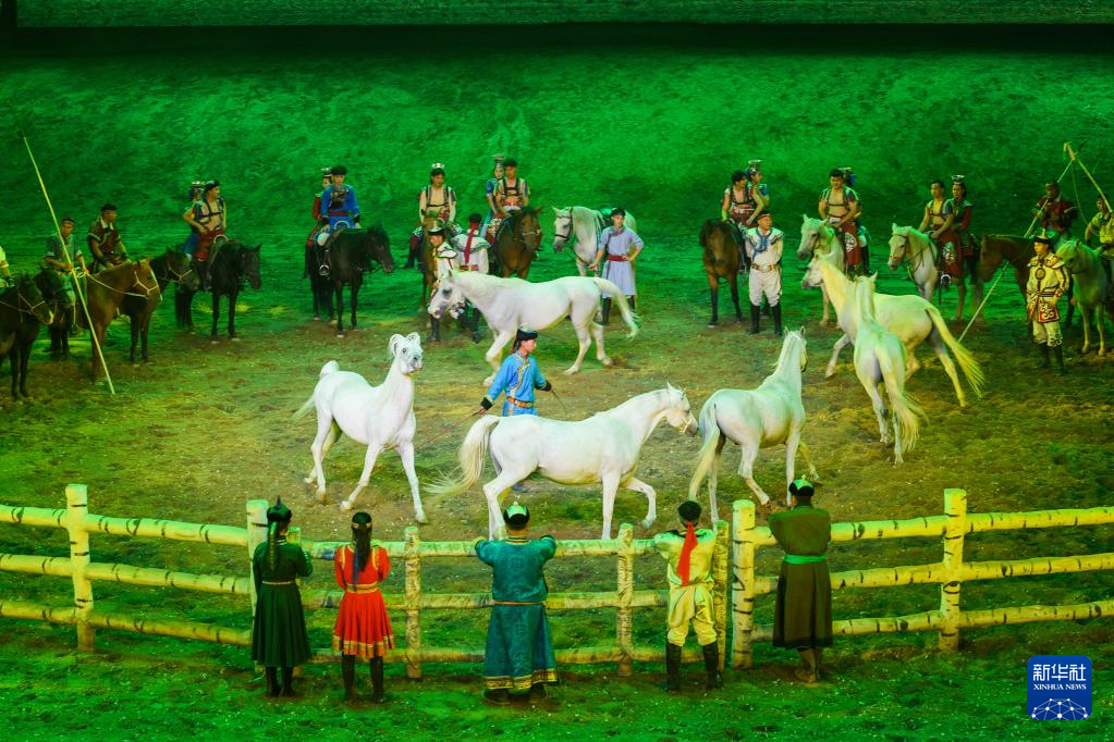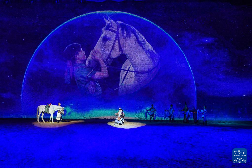 8月30日,演員在馬舞劇《千古馬頌》中表演。新華社記者 賈立君 攝