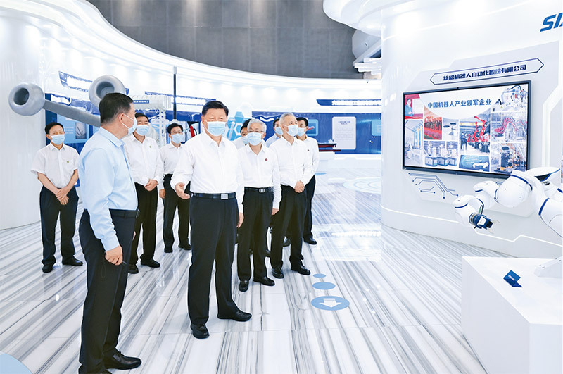 2022年8月16日至17日,中共中央總書記、國家主席、中央軍委主席習近平在遼寧考察。這是17日下午,習近平在沈陽新松機器人自動化股份有限公司展廳,了解公司生產經營、自主創(chuàng)新情況。 新華社記者 鞠鵬/攝