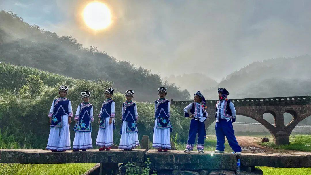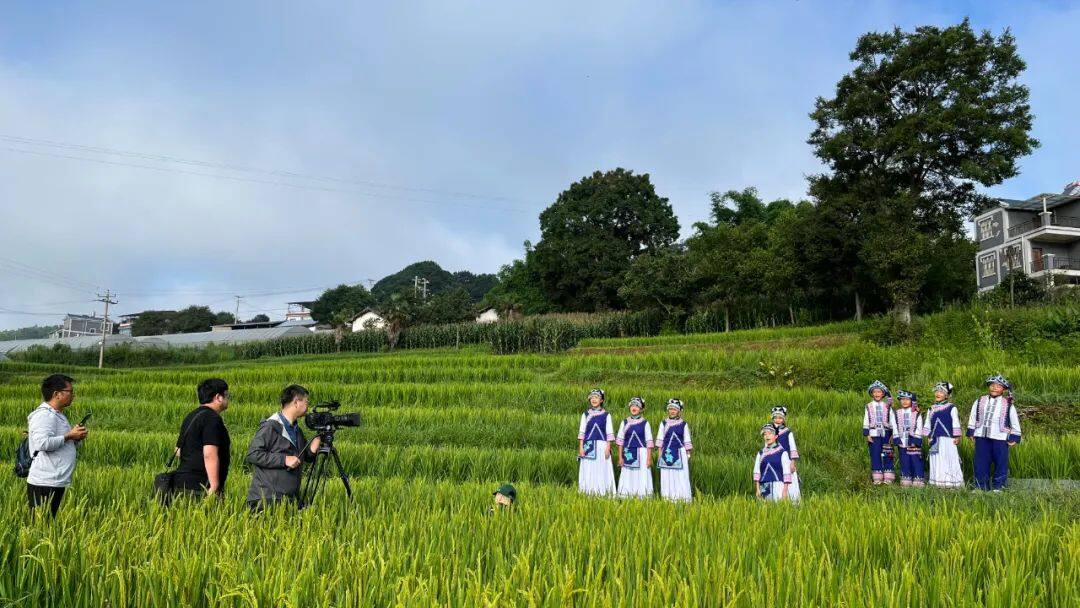 8月,攝制組來到祿勸,孩子們穿上民族服裝,來到稻田里、小河邊、小橋上、花海中,取景拍攝、邊唱邊拍。