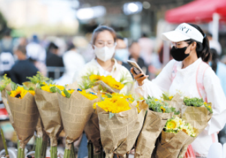 昆明鮮花消費(fèi)持續(xù)升溫。在外賣平臺(tái)上,美團(tuán)數(shù)據(jù)顯示,7月以來,昆明“斗南花市”的搜索量比去年同期增長51%,訂單量超過3000單的鮮花店有20多家;8月以來,昆明鮮花外賣訂單量環(huán)比增長22%,商戶數(shù)環(huán)比增長32%。消費(fèi)者線上下單,即買即送,實(shí)體花店外賣訂單不斷。