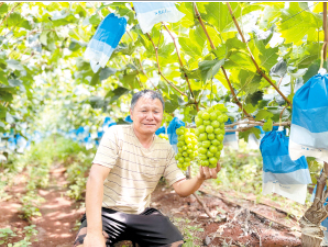 楊炳昆是地地道道的白魚人。2015年,白魚社區(qū)開始規(guī)劃種植基地,以種田為主的村民紛紛轉(zhuǎn)向種植果樹,楊炳昆也加入了這一隊(duì)伍。怎么疏果、如何防鳥、何時(shí)套袋、用什么肥料……為了掌握技術(shù),他多次前往山東以及云南建水等地學(xué)習(xí),并根據(jù)白魚社區(qū)自然條件探索適合當(dāng)?shù)氐姆N植技術(shù),葡萄質(zhì)量逐年提高,種類也越來(lái)越多。