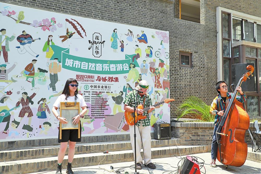 結合“翠湖大文創(chuàng)”區(qū)域公共品牌,五華區(qū)策劃了以翠湖四季風景為靈感的“翠湖四時”系列文旅融合主題活動?!按浜臅r”,即以翠湖及翠湖周邊的景觀、建筑、公園、消費以及市民的市井生活,分別提煉出春季以櫻花、藍花楹為主題的“花Young五華”、夏季以荷花為主題的“荷悅五華”、秋季以銀杏為主題的“杏繪五華”、冬季以觀鷗為主題的“鷗歌五華”四個大型主題文化藝術季,并培育了“櫻花藝術節(jié)”“銀杏藝術節(jié)”“摩登集市”等一系列文旅融合發(fā)展品牌,通過過去一年的探索與嘗試,在經濟、文化、旅游等領域都取得了顯著效果。