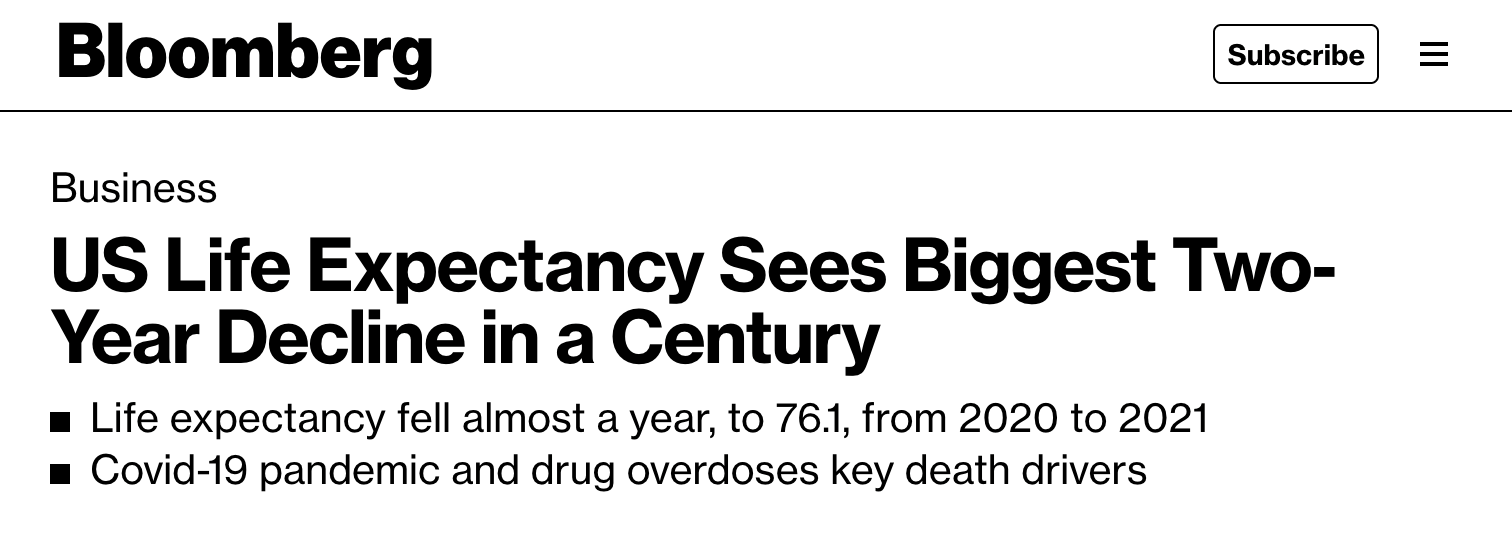 美國疾控中心8月31日發(fā)布的最新報(bào)告顯示,2019年至2021年,美國總體人均預(yù)期壽命下降了2.7歲。美聯(lián)社指出,上一次出現(xiàn)這樣的降幅還是在二戰(zhàn)期間。彭博社更是指出,美國人均預(yù)期壽命出現(xiàn)一個(gè)世紀(jì)以來最大的兩年間跌幅。報(bào)告分析稱,新冠疫情是首要原因。