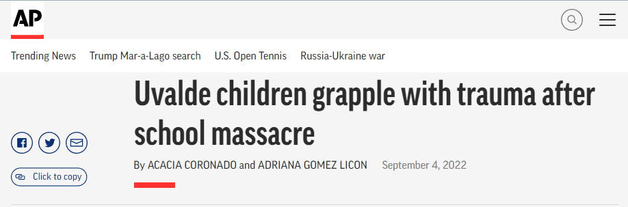 尤利·卡斯特羅(Yuri Castro)是烏瓦爾德市兩個(gè)男孩的母親,她的表兄弟在槍擊事件中喪生,曾教過(guò)她兒子的兩名老師被槍擊致死。她說(shuō),“這些孩子這么小就經(jīng)歷了這些,讓人難以接受?!笨ㄋ固亓_知道有些孩子受到了巨大的創(chuàng)傷,以至于不再說(shuō)話。校園槍擊案極大地顛覆了幸存者的生活。對(duì)一些人來(lái)說(shuō),癥狀持續(xù)多年,很難找到高質(zhì)量的治療方法。