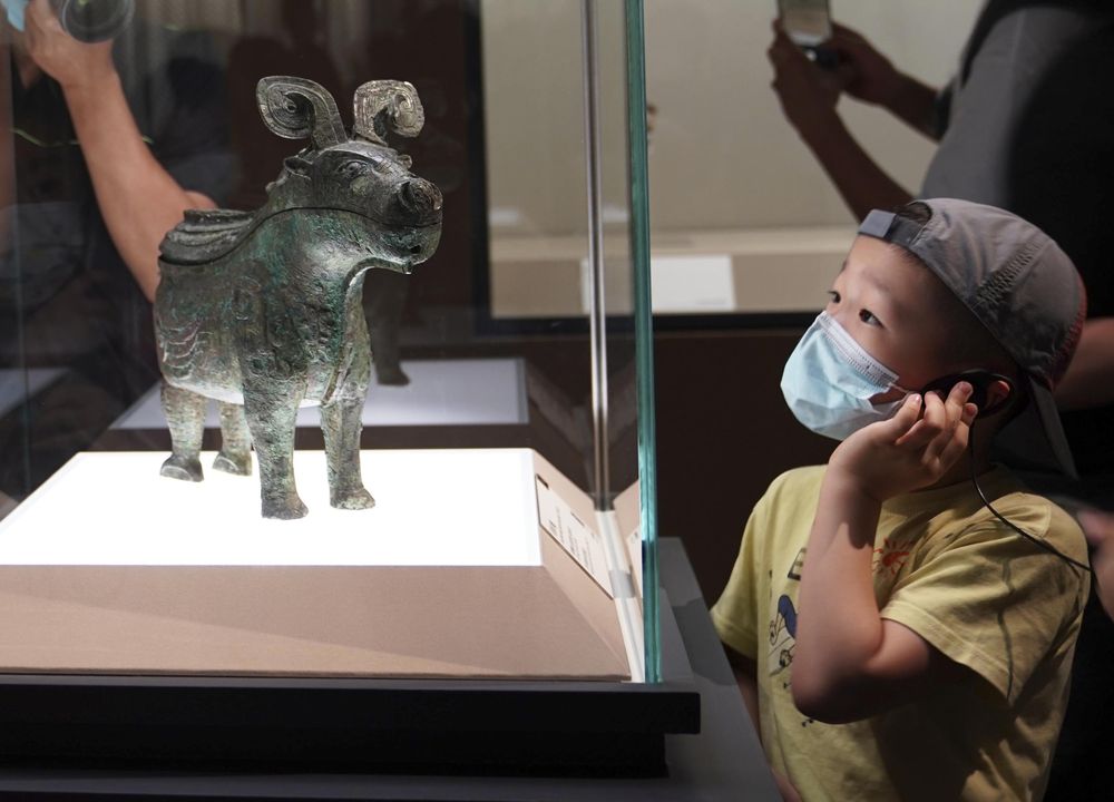 2022年7月30日,小觀眾在上海博物館舉行的“宅茲中國——河南夏商周三代文明展”上參觀。新華社記者 任瓏 攝