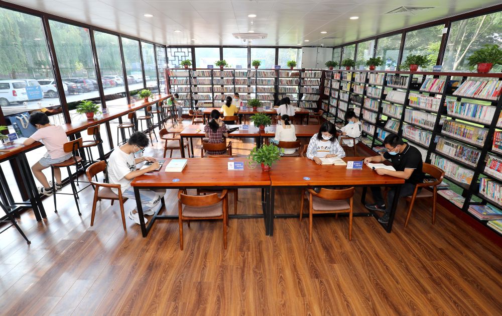 2021年8月21日,讀者在河北省石家莊市藁城區(qū)人民廣場(chǎng)“24小時(shí)智慧圖書館”內(nèi)閱讀。新華社記者 駱學(xué)峰 攝