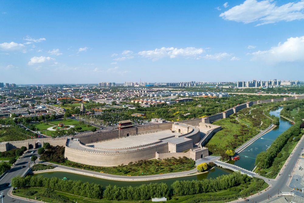 這是藍(lán)天白云掩映下的河北正定古城(2021年6月4日攝,無人機(jī)照片)。 新華社記者 朱旭東 攝