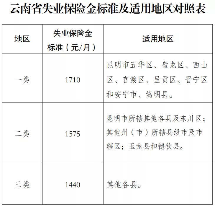 全省失業(yè)保險金發(fā)放標準要按照當?shù)刈畹凸べY標準的90%執(zhí)行。與云南省2022年最低工資標準同步調(diào)整,調(diào)整后的失業(yè)保險金月計發(fā)標準為:一類地區(qū)1710元/月;二類地區(qū)1575元/月;三類地區(qū)1440元/月。