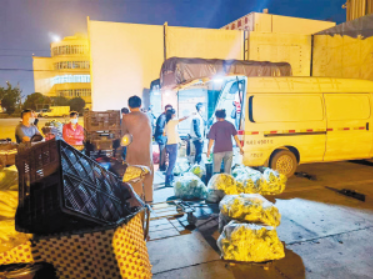 9月7日20時(shí),在嚴(yán)格落實(shí)相關(guān)防疫措施后,貨運(yùn)車輛陸續(xù)進(jìn)場(chǎng),商戶開(kāi)始采購(gòu)蔬菜。昆明市商務(wù)局黨組成員、副局長(zhǎng)李永林介紹:“王旗營(yíng)蔬菜批發(fā)市場(chǎng)每日的蔬菜供應(yīng)量在3000噸左右,有一部分用于外銷。目前臨時(shí)批發(fā)交易點(diǎn)預(yù)計(jì)供應(yīng)量在2000噸左右,基本可以滿足市民的蔬菜需求?!?/p>