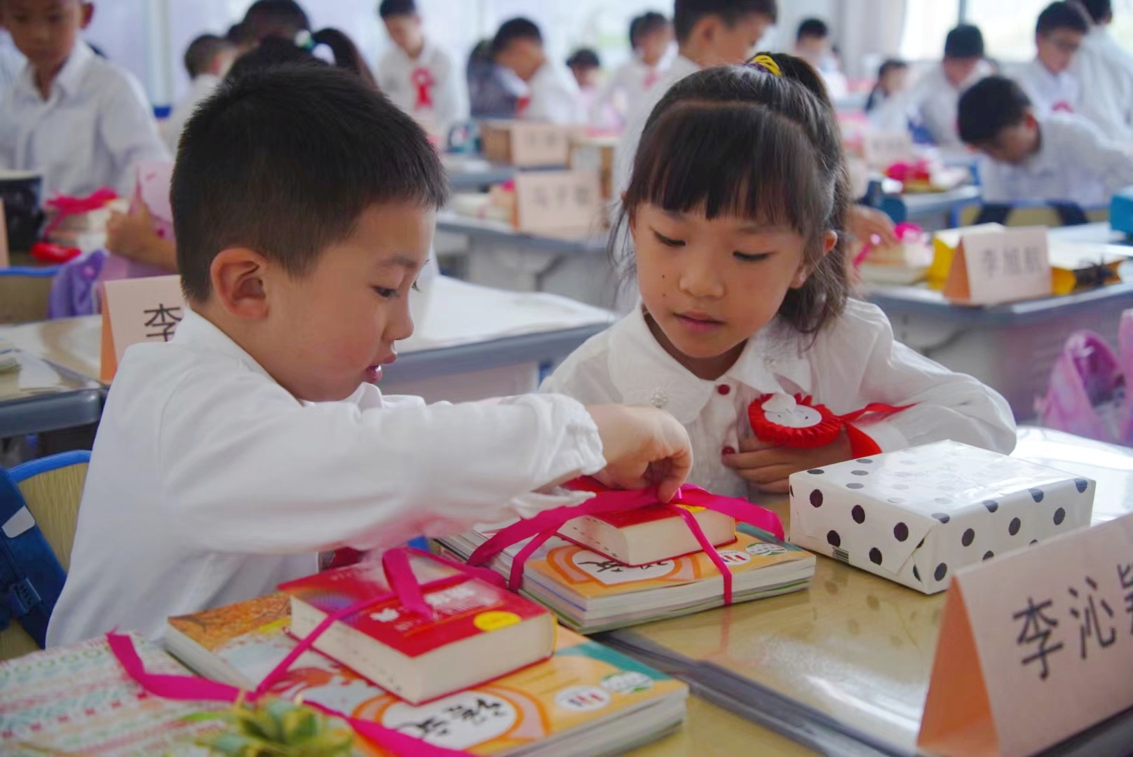 在入學(xué)儀式上,主持人楊清涵老師代表全校師生歡迎新生加入到書(shū)林一小這個(gè)溫暖的大家庭里,并為他們送出溫馨的寄語(yǔ)。學(xué)校領(lǐng)導(dǎo)和少先隊(duì)大隊(duì)委們,為新入學(xué)的同學(xué)們佩戴小紅花,以此祝賀他們開(kāi)啟嶄新的校園生活。