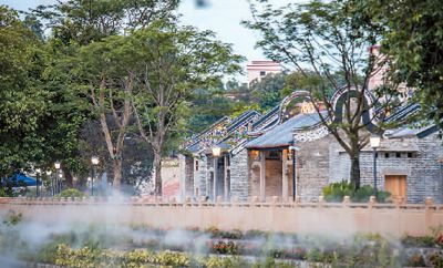 大量傳統(tǒng)嶺南建筑的細(xì)節(jié)元素如青磚、瓦片、嶺南山墻等被精心保存,灰塑、彩繪、滿洲窗、蠔殼墻等被完整保留。一些原有風(fēng)貌特征不明顯、保護(hù)等級較低、存在安全隱患的建筑結(jié)構(gòu)被加固,后期加建的破壞原有風(fēng)貌的部分被清拆。新建的仿古建筑在保證傳統(tǒng)嶺南建筑的風(fēng)格下,局部使用玻璃、鋁板等現(xiàn)代建筑材料,既有古建筑特色,又有現(xiàn)代建筑的通透。對每一棵生長了幾十年的大榕樹都進(jìn)行了實地測量,并通過控規(guī)調(diào)整對其進(jìn)行保留。