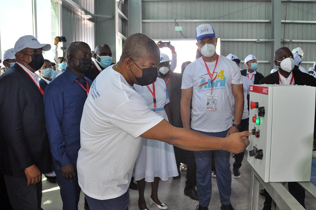 2022年4月4日,安哥拉總統(tǒng)洛倫索在庫(kù)內(nèi)內(nèi)省按下抗旱項(xiàng)目一期工程泵機(jī)啟動(dòng)鍵。新華社發(fā)(許昆鵬 攝)