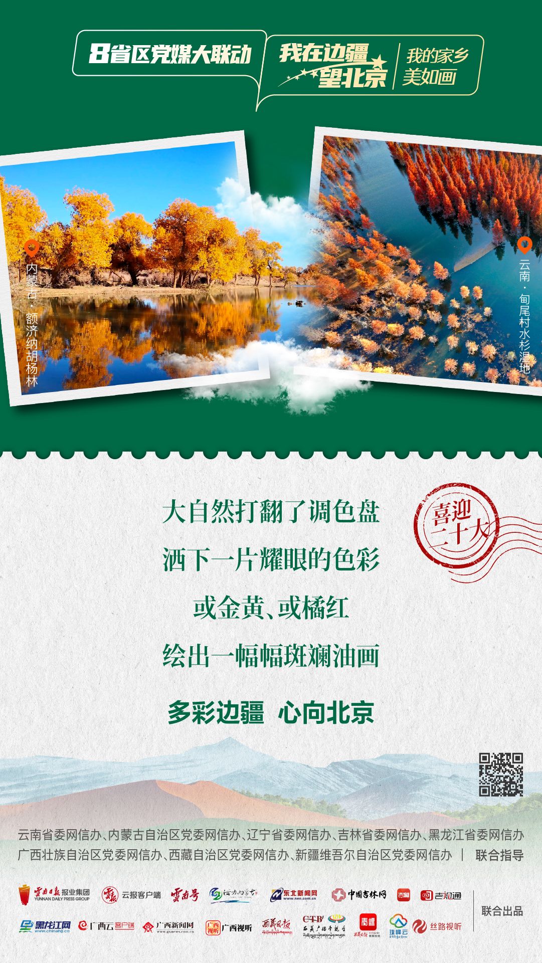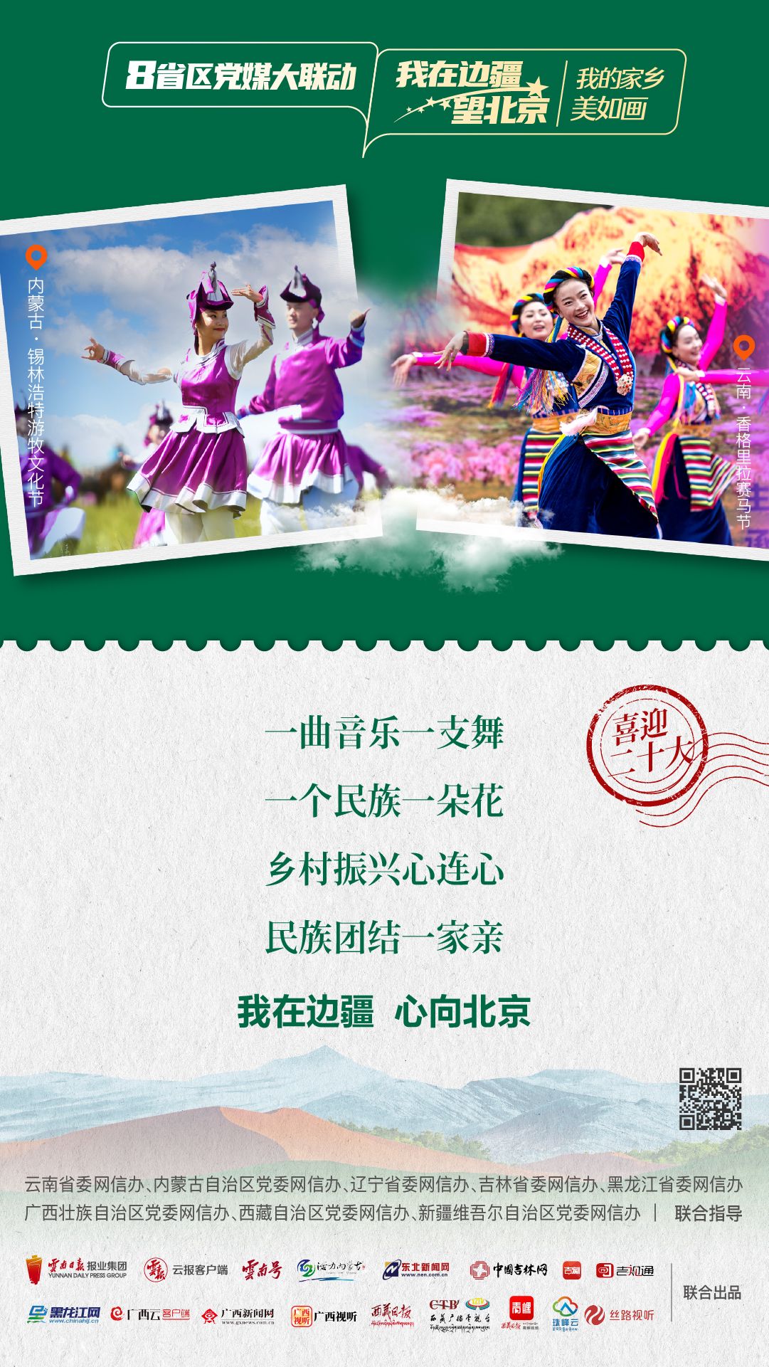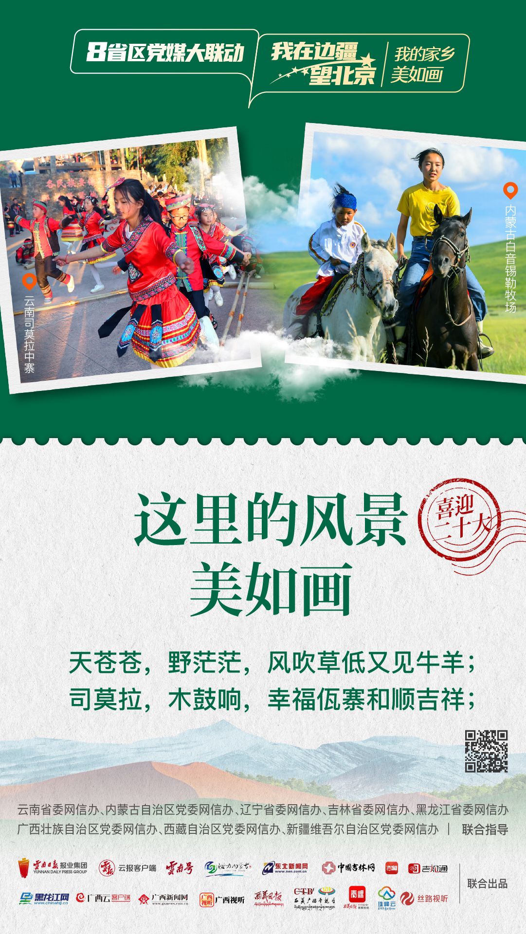 為生動講述在黨的引領下邊疆地區(qū)發(fā)生的翻天覆地的變化,邊疆人民用勤勞雙手和智慧改變家園、改變命運的新故事,深刻描繪邊疆干部群眾以實際行動向黨的二十大獻禮,深情告白“喜迎二十大 奮進新征程”的喜悅之情。由云南省委網信辦指導,云南省媒體融合重點實驗室——融媒體精品制作室制作,云南日報報業(yè)集團云報客戶端聯(lián)動內蒙古自治區(qū)、遼寧省、吉林省、黑龍江省、廣西壯族自治區(qū)、西藏自治區(qū)、新疆維吾爾自治區(qū),聯(lián)合推出融媒體聯(lián)動產品《8省區(qū)黨媒大聯(lián)動·我在邊疆望北京》。今天一起來看第一期:“我的家鄉(xiāng)美如畫”。