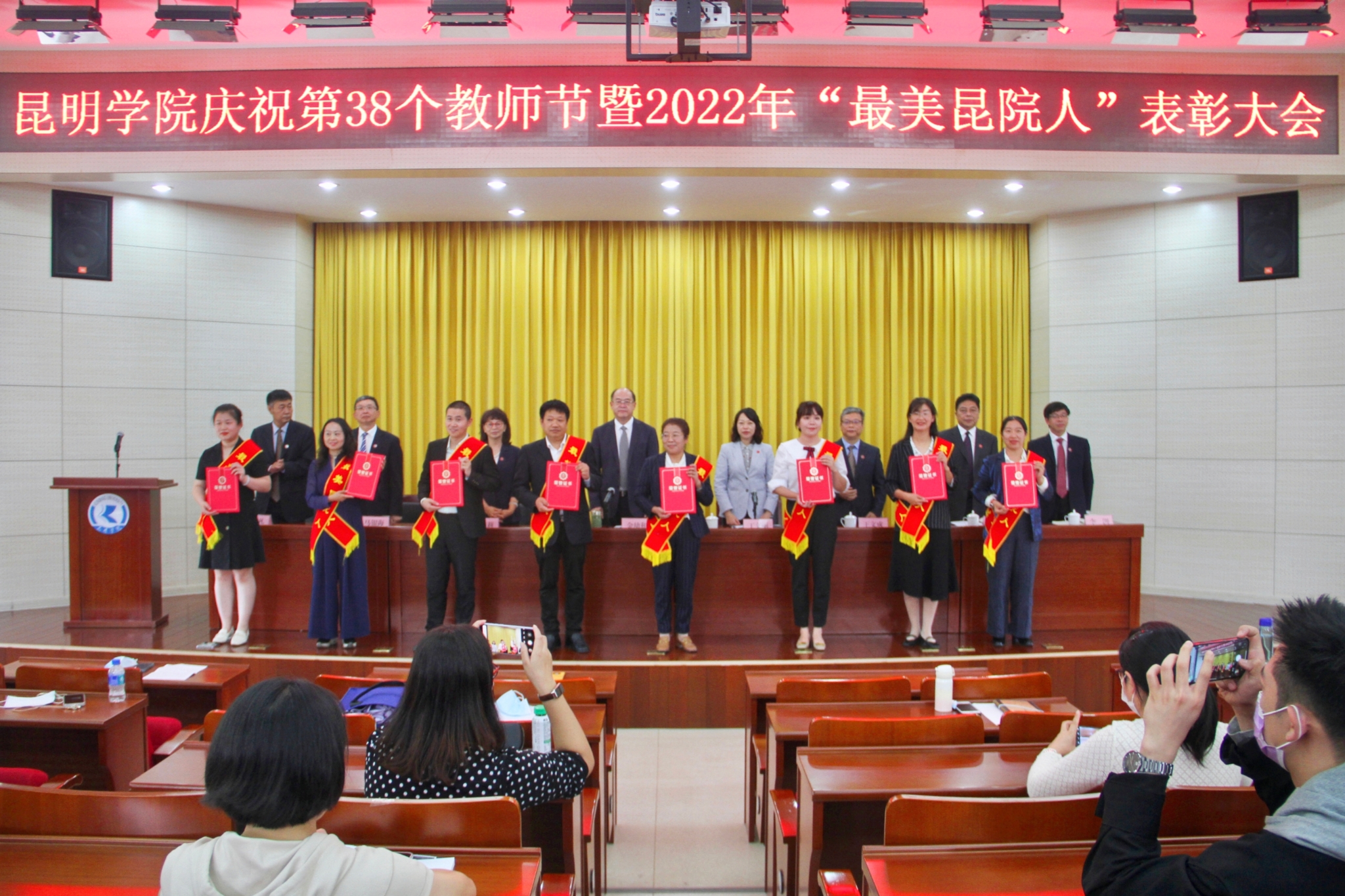 會(huì)上宣讀了“最美昆院人”表彰決定,對(duì)評(píng)選出的教書育人獎(jiǎng)4人、科研貢獻(xiàn)獎(jiǎng)4人、管理服務(wù)獎(jiǎng)2人、優(yōu)秀輔導(dǎo)員獎(jiǎng)2人、優(yōu)秀學(xué)子獎(jiǎng)3人予以表彰。校領(lǐng)導(dǎo)為受表彰的老師、同學(xué)頒發(fā)榮譽(yù)證書。