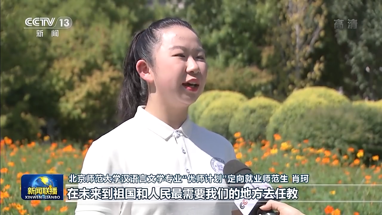 北京師范大學(xué)漢語言文學(xué)專業(yè)“優(yōu)師計(jì)劃”定向就業(yè)師范生 肖珂:總書記勉勵(lì)我們?cè)鲩L(zhǎng)傳道授業(yè)解惑本領(lǐng),在未來到祖國(guó)和人民最需要我們的地方去任教。我定不負(fù)囑托,努力學(xué)習(xí),在畢業(yè)后回到我的家鄉(xiāng)。