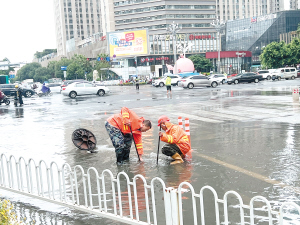 工作人員在排除淹積水。 昆明排水公司供圖