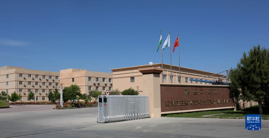 這是2018年5月8日拍攝的烏茲別克斯坦鵬盛工業(yè)園入口。鵬盛工業(yè)園是中國民營企業(yè)直接在烏投資建立的首個(gè)中烏合資工業(yè)園區(qū)。新華社記者 周良 攝