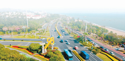 位于福建省廈門市環(huán)島路上的投洽會“金鑰匙”雕塑。新華社記者 姜克紅攝