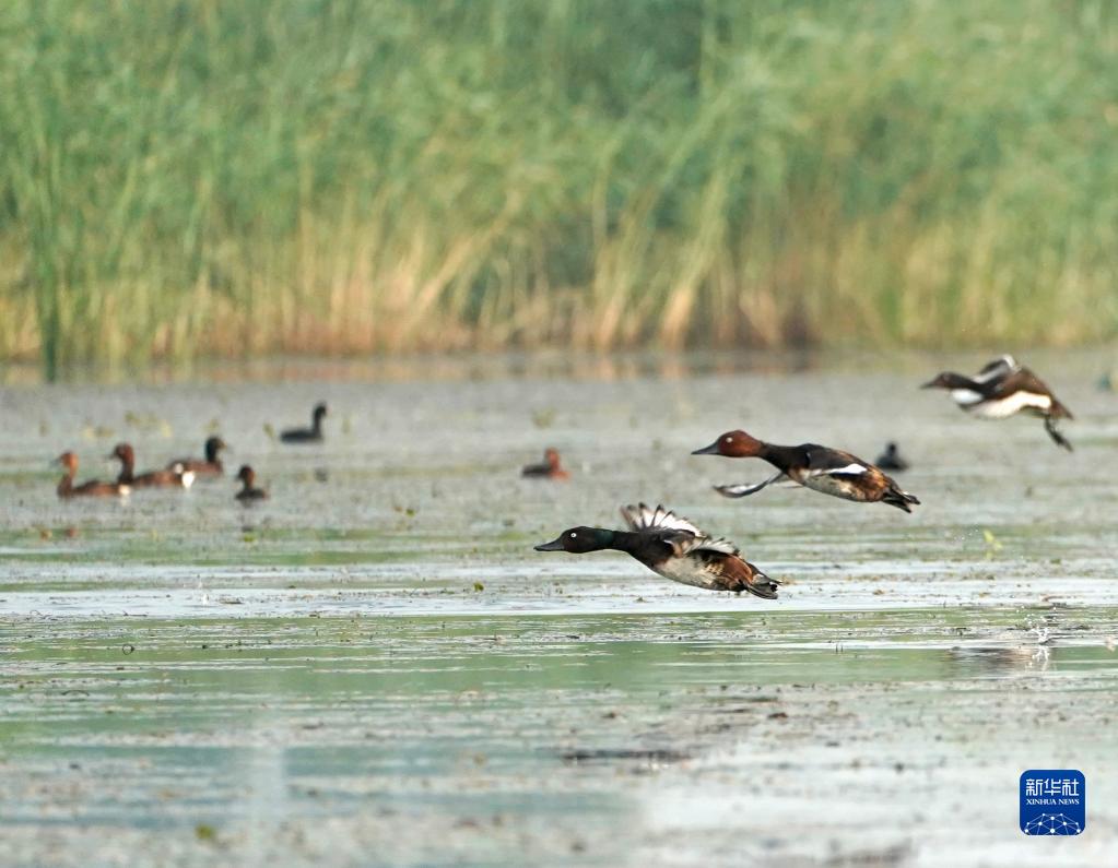 夏日的白洋淀,碧波蕩漾,荷紅葦綠。遼闊的水面上,一群活潑可愛的青頭潛鴨幼鳥跟隨“父母”在蘆葦叢中穿梭。這意味著,世界極度瀕危物種青頭潛鴨將白洋淀作為了繁殖地。