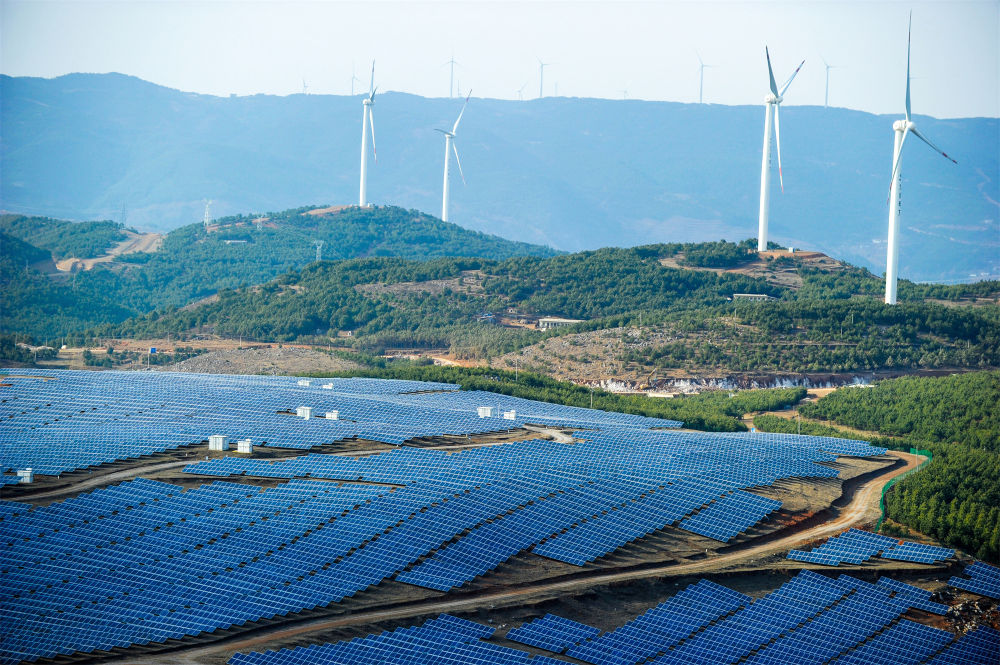 這是貴州省威寧縣平箐光伏電站和大海子風電場(2018年3月13日攝)。新華社記者 楊文斌 攝