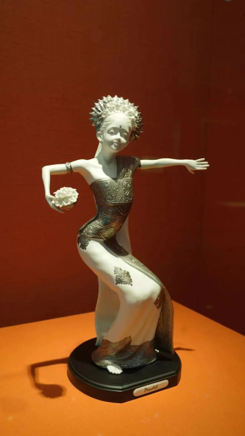 2013年10月,時(shí)任印度尼西亞總統(tǒng)蘇西洛贈習(xí)近平的鑲錫瓷塑舞者。(攝影/胡楊)