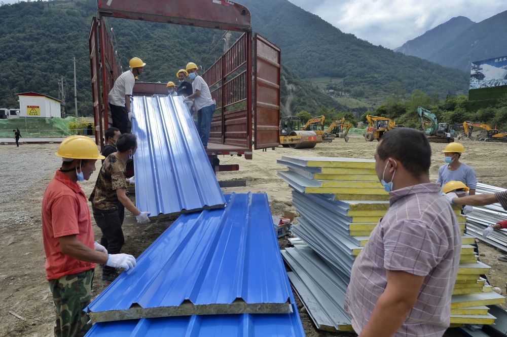 9月12日,瀘定縣“9·5”地震過渡安置房磨西鎮(zhèn)安置點1號地塊施工場地現(xiàn)場。新華社記者 劉坤 攝
