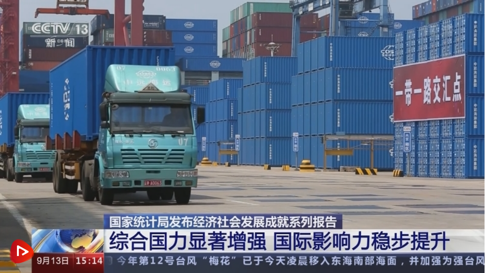 國(guó)家統(tǒng)計(jì)局今天(9月13日)發(fā)布的報(bào)告顯示,黨的十八大以來(lái),我國(guó)經(jīng)濟(jì)持續(xù)健康發(fā)展,綜合國(guó)力顯著增強(qiáng),國(guó)際影響力穩(wěn)步提升。