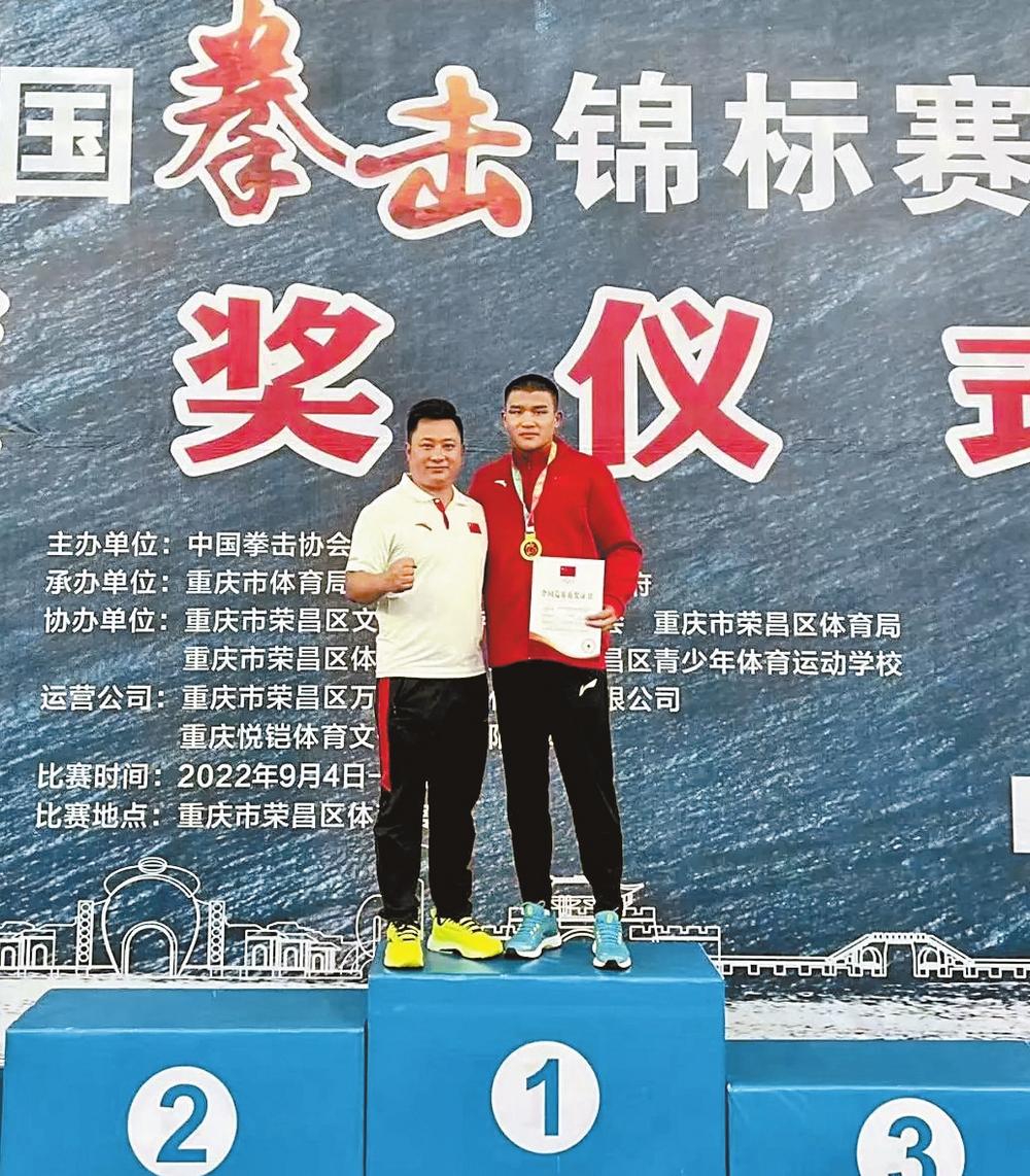 李國(guó)鋒(右)與主教練熊兆榮合影。云南省北教場(chǎng)體育訓(xùn)練基地供圖